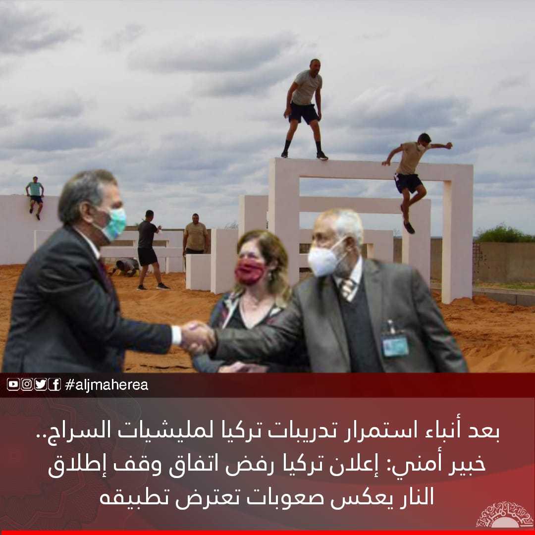 يشار إلى أن الرئيس التركي كان قد أعلن تشكيكه بالأمس في تنفيذ اتفاق وقف إطلاق النار، وفي ذات السياق واصلت وزارة الدفاع التركية اليوم السبت تدريبات مليشيات السراج، على الرغم من أن ذلك يعد خرقا للاتفاق الذي ينص على وقف كل الاتفاقيات العسكرية بما فيها التدريب، وخروج القوات الأجنبية من ليبيا.