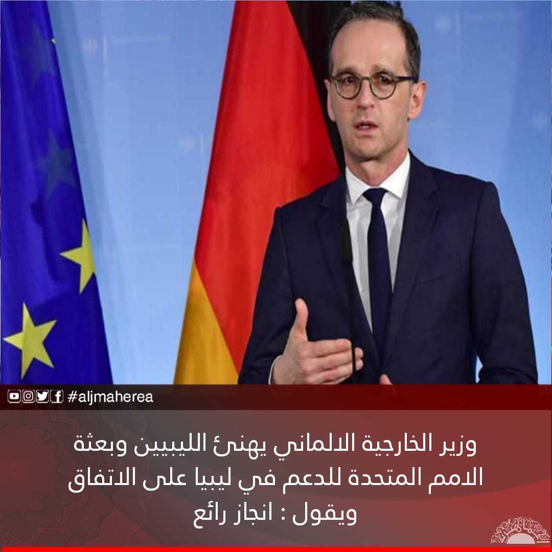 قال وزير الخارجية الالماني في تغريدة له على موقع التواصل الاجتماعي تويتر انه ما زال هناك الكثير من العمل في الانتظار والذي سنقوم من أجله بدعم الليبيين وبعثة الأمم المتحدة للدعم في ليبيا.