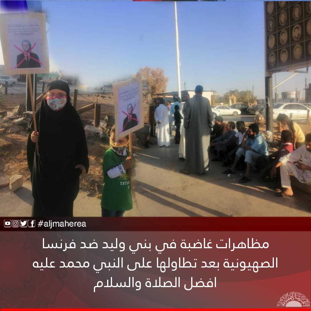 مظاهرات غاضبة في بني وليد ضد فرنسا الصهيونية بعد تطاولها على النبي محمد عليه افضل الصلاة والسلام