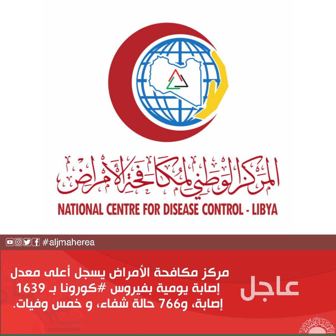 عاجل // مركز مكافحة الأمراض يسجل أعلى معدل إصابة يومية بفيروس #كورونا بـ 1639 إصابة، و766 حالة شفاء، و خمس وفيات