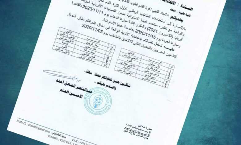 الاتحاد الليبي لكرة القدم يوجه الأندية بتسهيل التحاق بعض اللاعبين بصفوف المنتخب