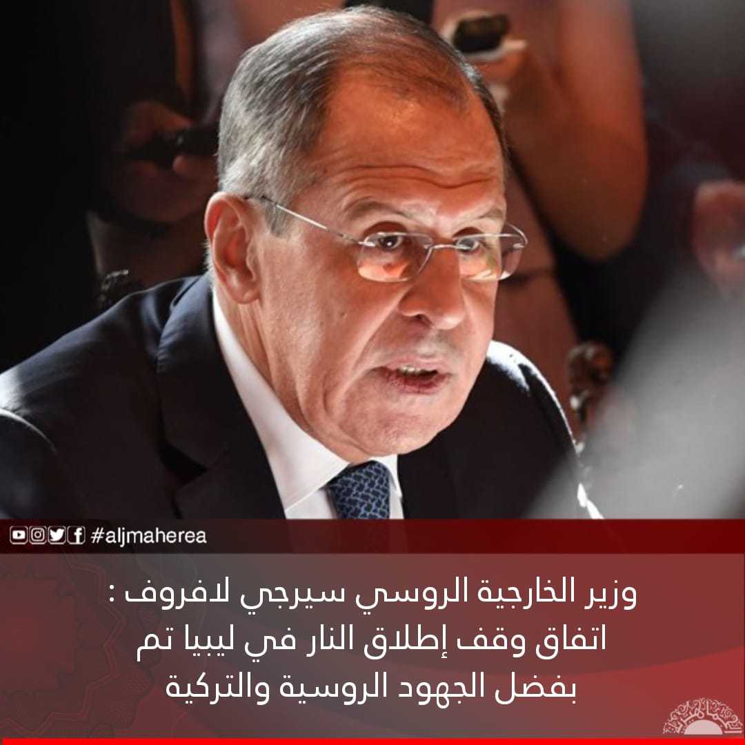 وزير الخارجية الروسي سيرجي لافروف : اتفاق وقف إطلاق النار في ليبيا تم بفضل الجهود الروسية والتركية