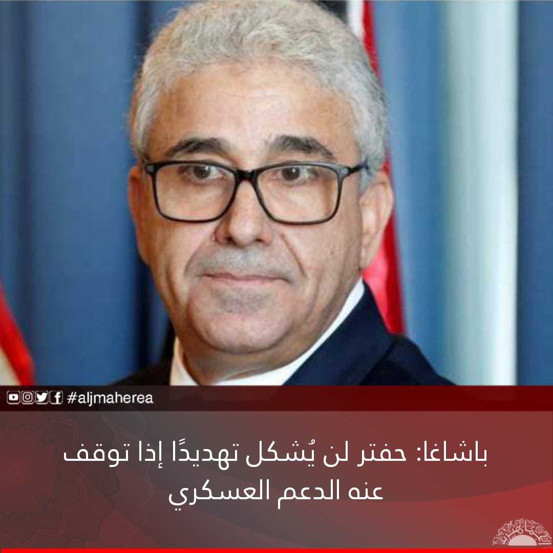 وأشار “باشاغا” الذي تحظى حكومتهُ بدعم تركي وقطري، إلى أن خطر القائد العسكري خليفة حفتر، يكمن في الدعم الذي يتلقاه من دول أجنبية على مستوى العتاد والمعدات العسكرية، مؤكدًا أن توقف هذا الدعم يعني أن “حفتر” لن يشكل تهديدًا داخليًا.