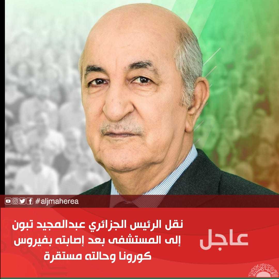الرئيسية/محلي/عاجل// نقل الرئيس الجزائري عبدالمجيد تبون إلى المستشفى بعد إصابته بفيروس كورونا وحالته مستقرة محلي عاجل// نقل الرئيس الجزائري عبدالمجيد تبون إلى المستشفى بعد إصابته بفيروس كورونا وحالته مستقرة 27 أكتوبر، 2020 الوسومتبون كورونا 27 أكتوبر، 2020 فيسبوك تويتر بينتيريست واتساب تيلقرام ڤايبر مشاركة عبر البريد طباعة