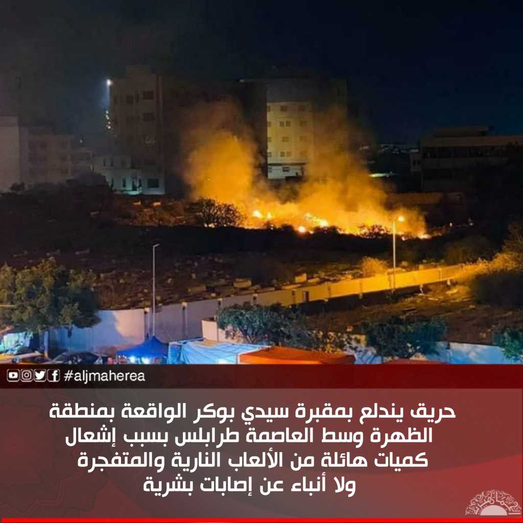 الرئيسية/محلي/حريق يندلع بمقبرة سيدي بوكر الواقعة بمنطقة الظهرة وسط العاصمة طرابلس بسبب إشعال كميات هائلة من الألعاب النارية والمتفجرة ولا أنباء عن إصابات بشرية محلي حريق يندلع بمقبرة سيدي بوكر الواقعة بمنطقة الظهرة وسط العاصمة طرابلس بسبب إشعال كميات هائلة من الألعاب النارية والمتفجرة ولا أنباء عن إصابات بشرية 29 أكتوبر، 2020 الوسومألعاب نارية اشتعال حريق طرابلس 29 أكتوبر، 2020 فيسبوك تويتر بينتيريست واتساب تيلقرام ڤايبر مشاركة عبر البريد طباعة