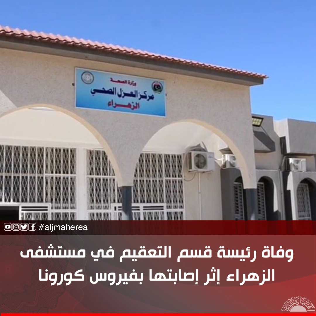 توفت اليوم الجمعة، رئيسة قسم التعقيم بمستشفى الزهراء مبروكة الصويعي، متأثرة بإصابتها بفيروس «كورونا المستجد».