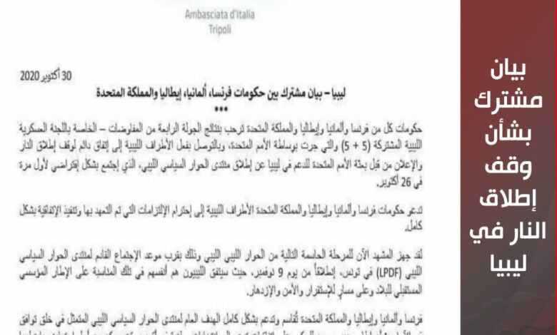 بيان مشترك بشأن وقف إطلاق النار في ليبيا