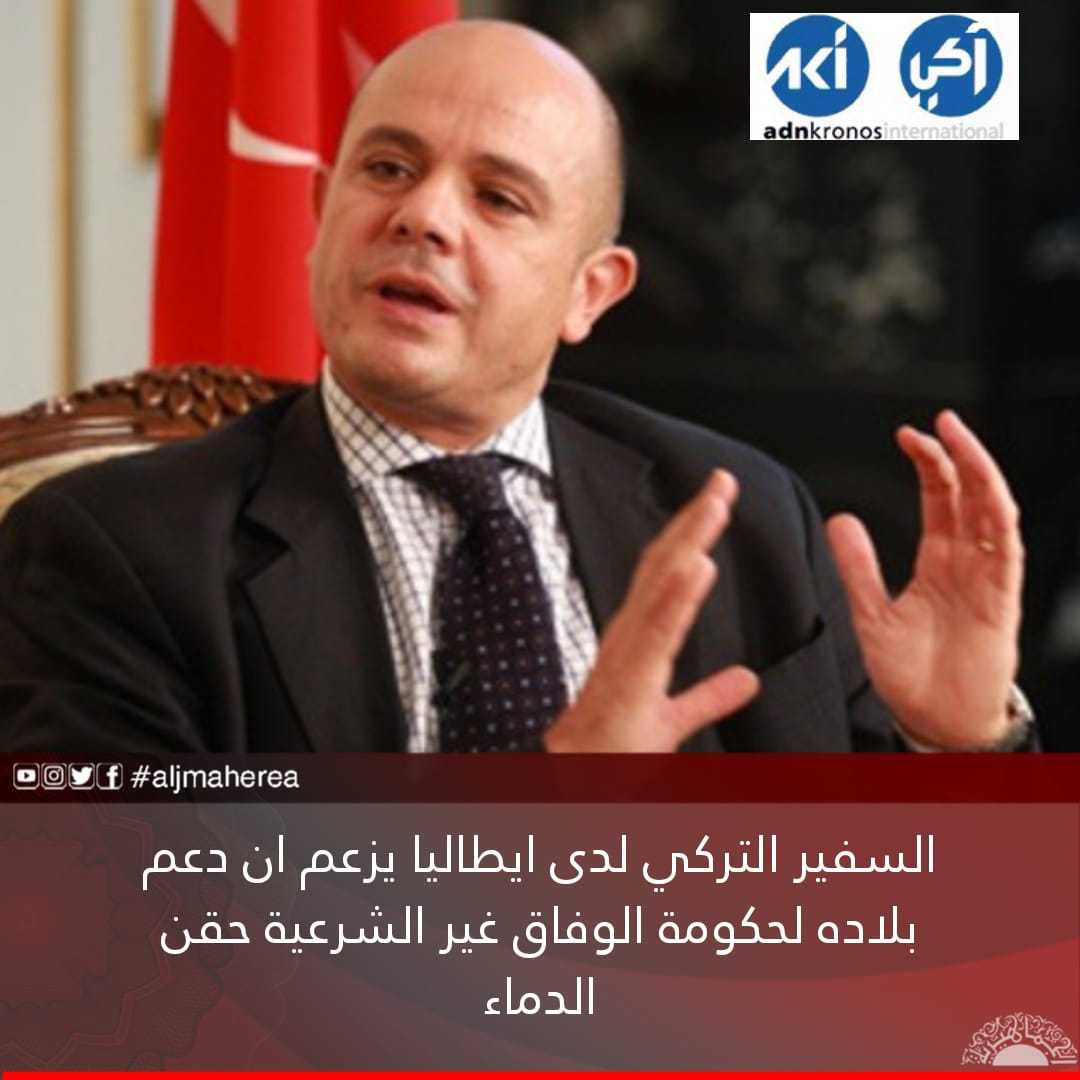 السفير التركي لدى ايطاليا يزعم ان دعم بلاده لحكومة الوفاق غير الشرعية حقن الدماء