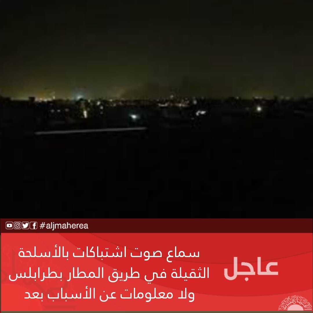عاجل // سماع صوت اشتباكات بالأسلحة الثقيلة في طريق المطار بطرابلس ولا معلومات عن الأسباب بعد