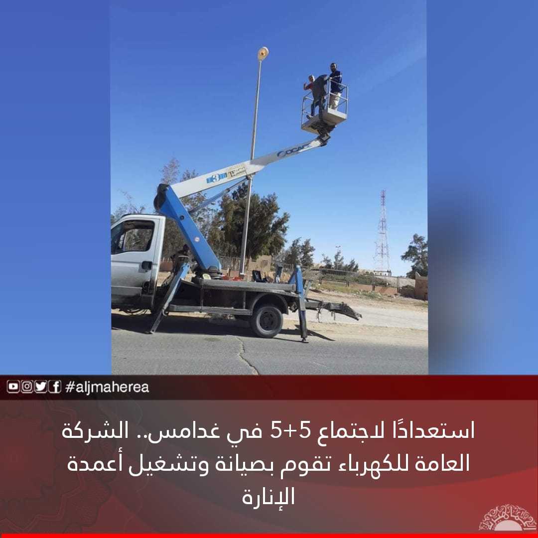 استعدادا لعقد اجتماع اللجنة العسكرية 5+5 في مدينة غدامس الليبية، قامت الشركة العامة للكهرباء، بتشكيل خمس فرق عمل لصيانة وتشغيل أعمدة الإنارة العامة في مدينة غدامس، إستعدادا لعقد الجولة الخامسة من المحادثات وذلك للمرة الأولى في ليبيا بمدينة غدامس بحضور الممثلة الخاصة للأمين العام للأمم المتحدة في ليبيا.