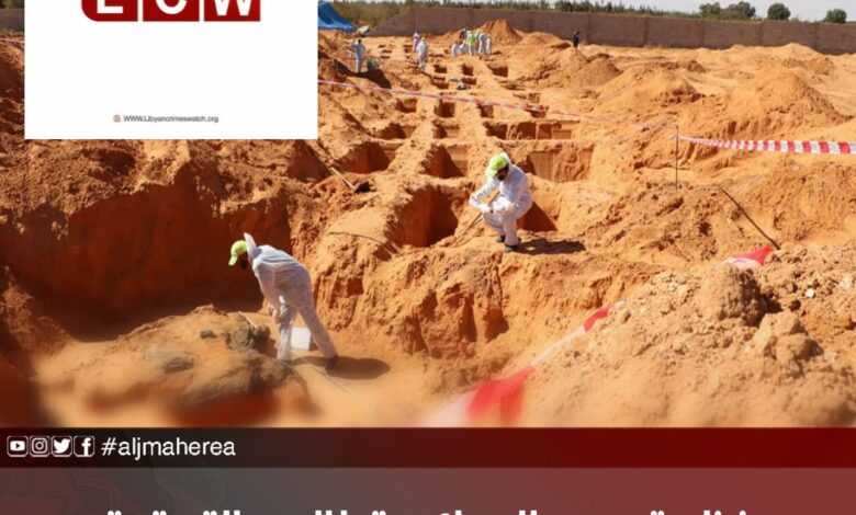 وسجلت المنظمة في الخامس عشر من أكتوبر انتشال 12 جثة عثر عليها في عدد من المقابر الجماعية بمشروع الربط في مدينة ترهونة من قبل هيئة البحث والتعرف على المفقودين.
