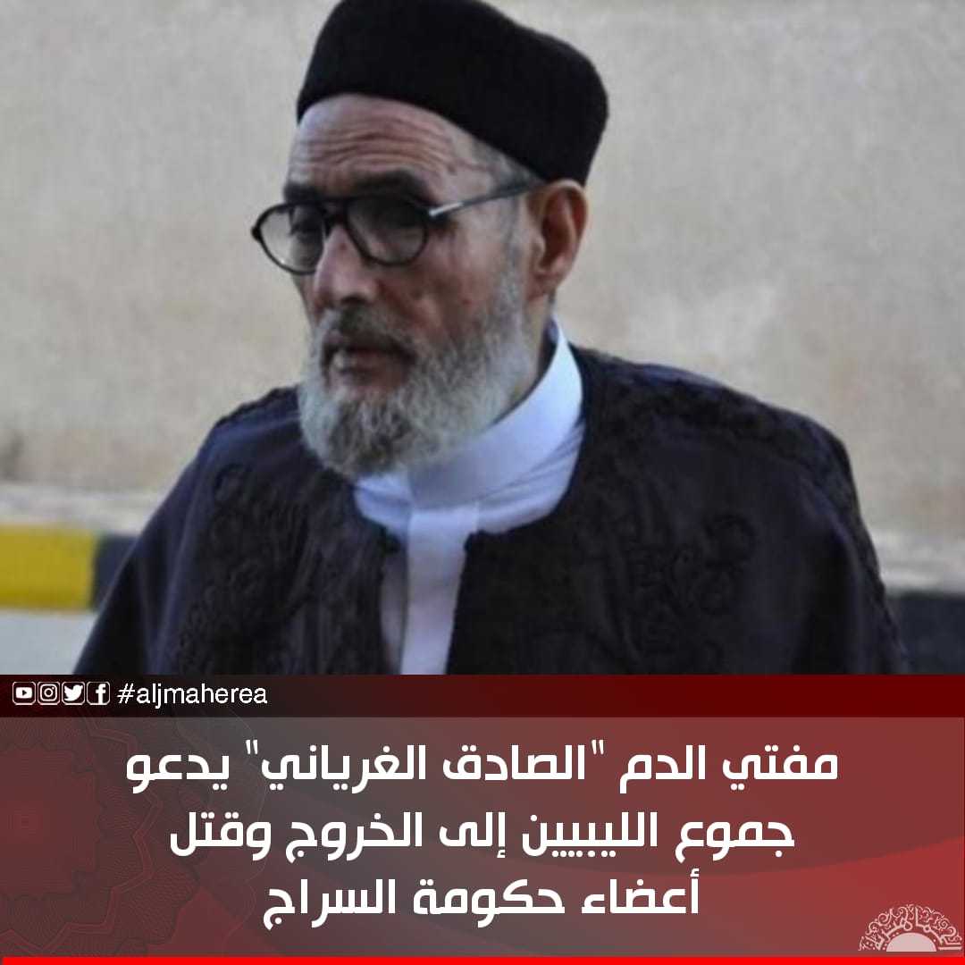وشدد الغرياني، أن المواطنين والمجتمع المدني، إذا رأوا أن الحكومة عاجزة كما كانت عاجزة في السابق، على حد وصفه، فعليهم الخروج عن بكرة أبيهم إلى الشوارع بسلاحهم ليقتلوا أعضاء الحكومة.