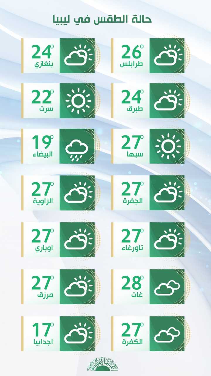 بنغازي 24 – 17 غائم جزئيا
