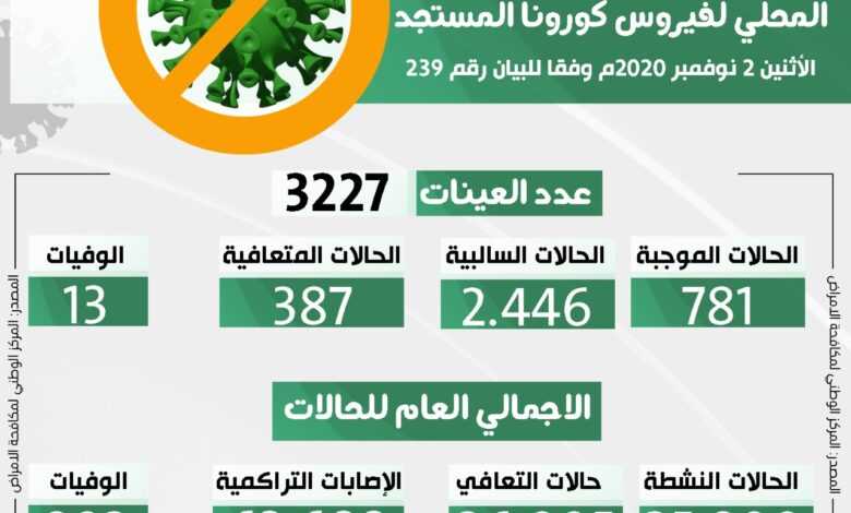 – عدد (781) عينة موجبة ( 531 جديدة + 250 مخالطة )