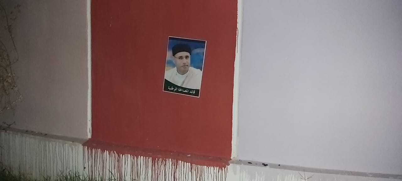 وقد ألصقت على واجهة المدرسة صورة كُتب عليها ” قائد المصالحة الوطنية”.