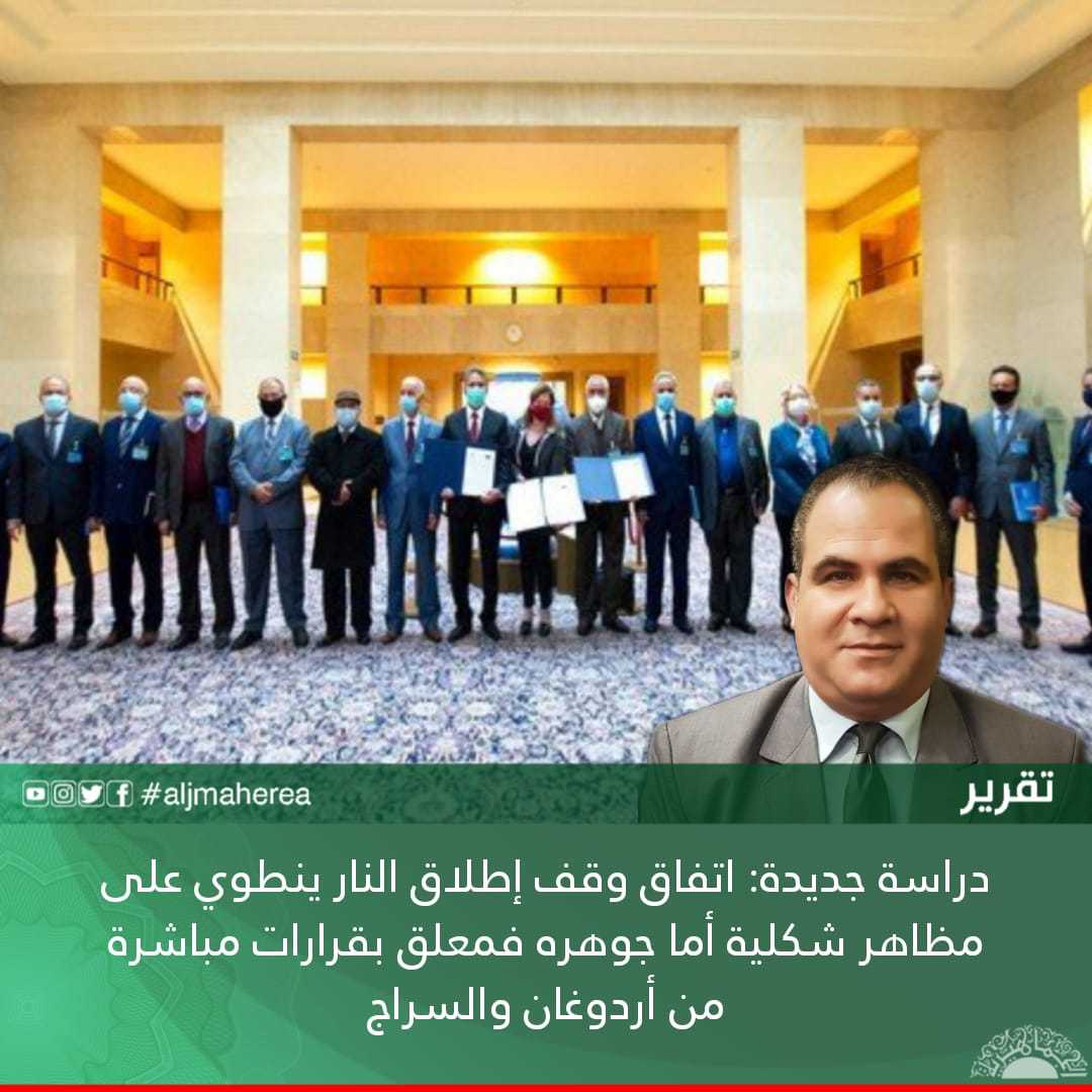 وقالت إنه ينطوي على مظاهر شكلية، أما نقاط إبعاد المرتزقة والقوات الأجنبية، فستظل معلقة برغبة أردوغان وقرار حكومة السراج غير الشرعية وهى لن تقبل ذلك بسهولة، باعتبار أن تركيا كانت الداعم الأول لها.