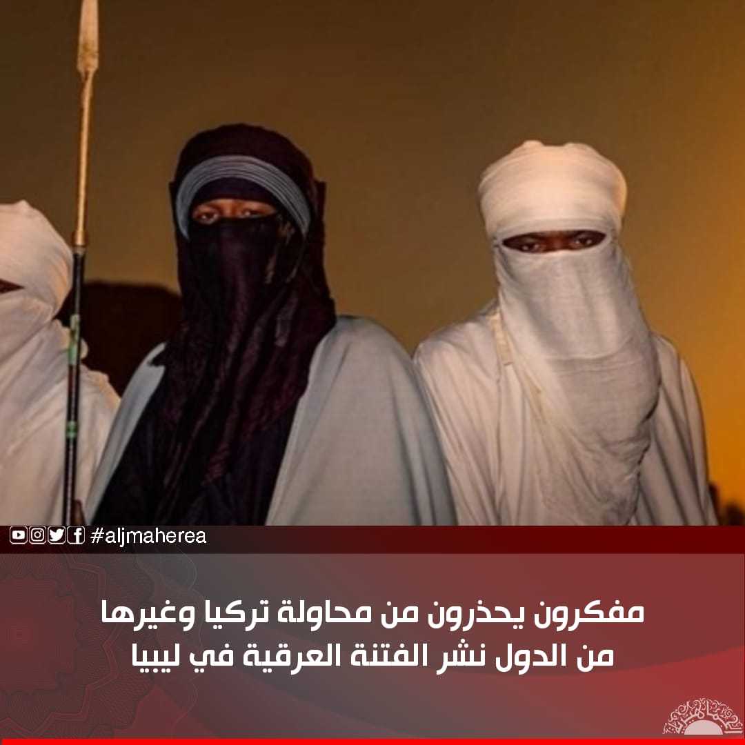 نبه مفكرون وأدباء ليبيون إلى محاولة تركيا وبعض الدول الأخرة لنشر الفتنة، والسعي لاستخدام التنوع العرقي في البلاد، إلى معسكرات للتنازع العرقي تنتج انقساما وجدانيا ينتهي بالتقسيم.