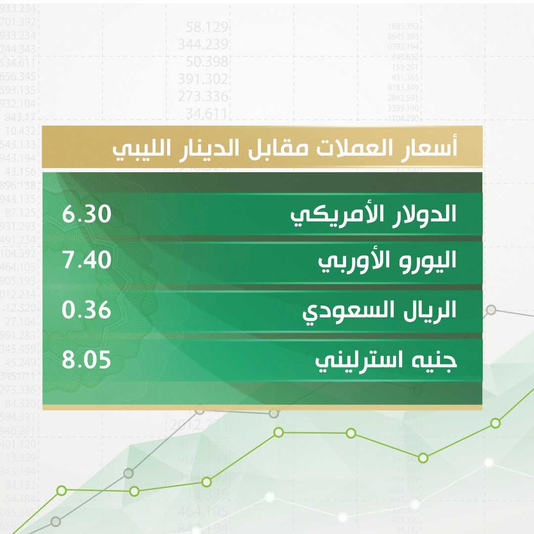 دولار بشيك المصدق: – 7.74 دينار “التجارة والتنمية” (طرابلس) / دينار – 7.67 “مصرف الوحدة” – 7.15 “مصرف الجمهورية”.