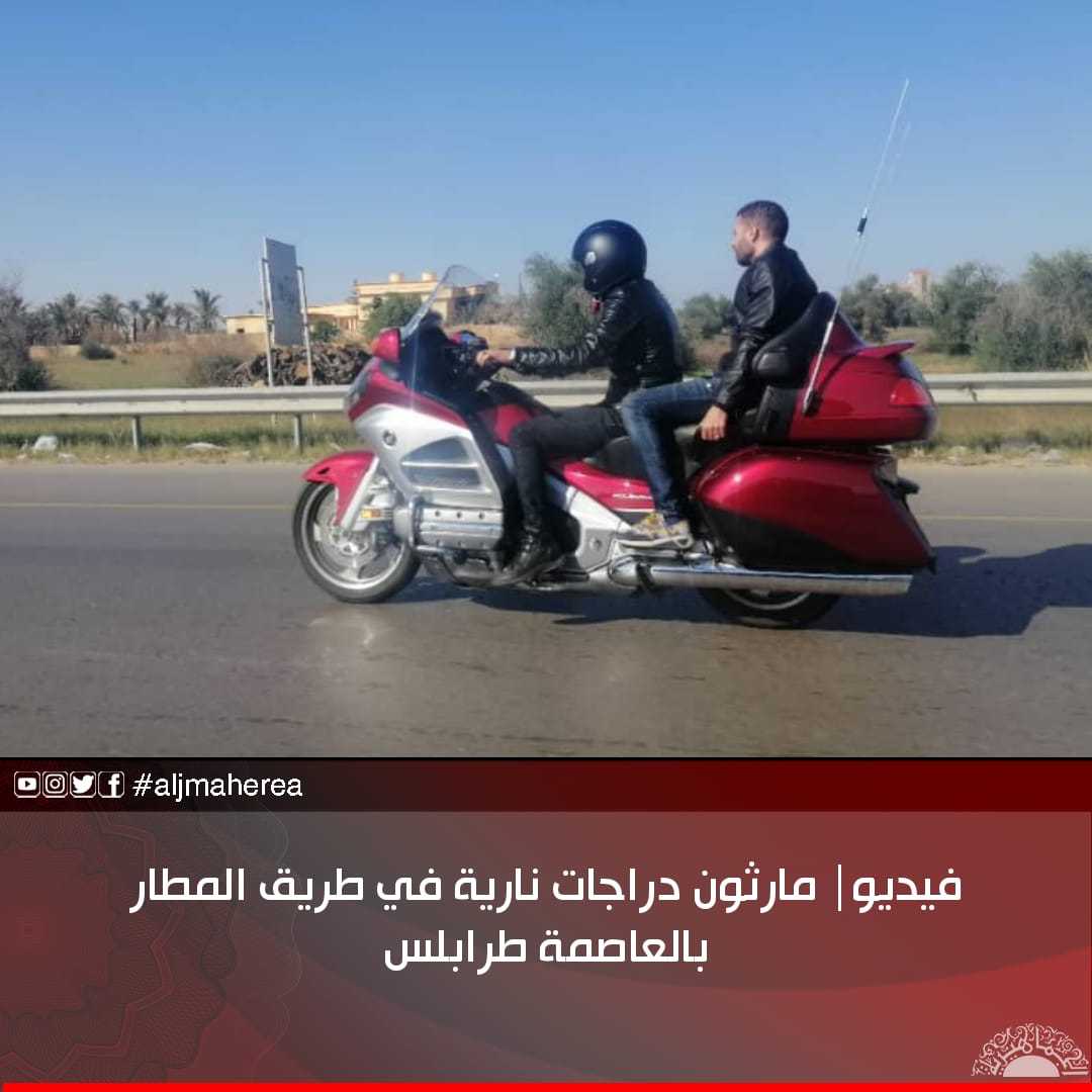 فيديو| مارثون دراجات نارية في طريق المطار بالعاصمة طرابلس