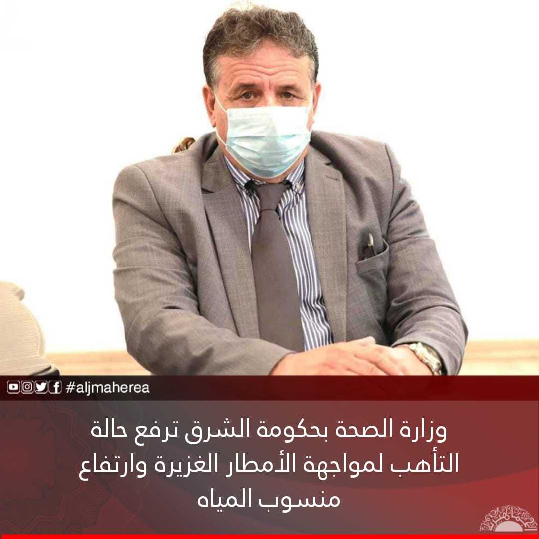 طالبت وزارة الصحة بحكومة الشرق السبت ،برفع حالة التأهب القصوي بكافة المستشفيات العامة والتعليمية والقروية والمراكز التخصصية لمواجهة هطول الأمطار الغزيرة وارتفاع منسوب المياه.