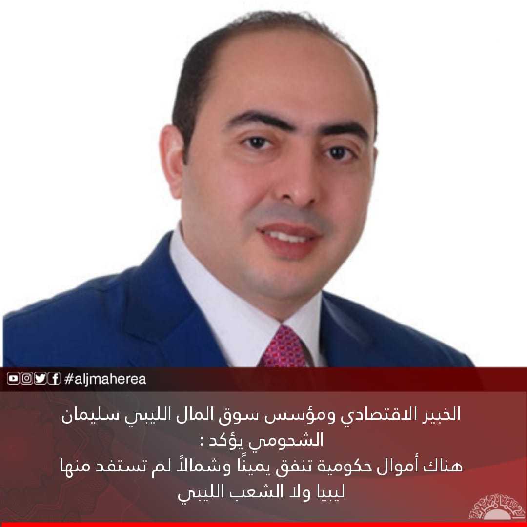 الخبير الاقتصادي ومؤسس سوق المال الليبي سليمان الشحومي يؤكد : هناك أموال حكومية تنفق يمينًا وشمالاً لم تستفد منها ليبيا ولا الشعب الليبي