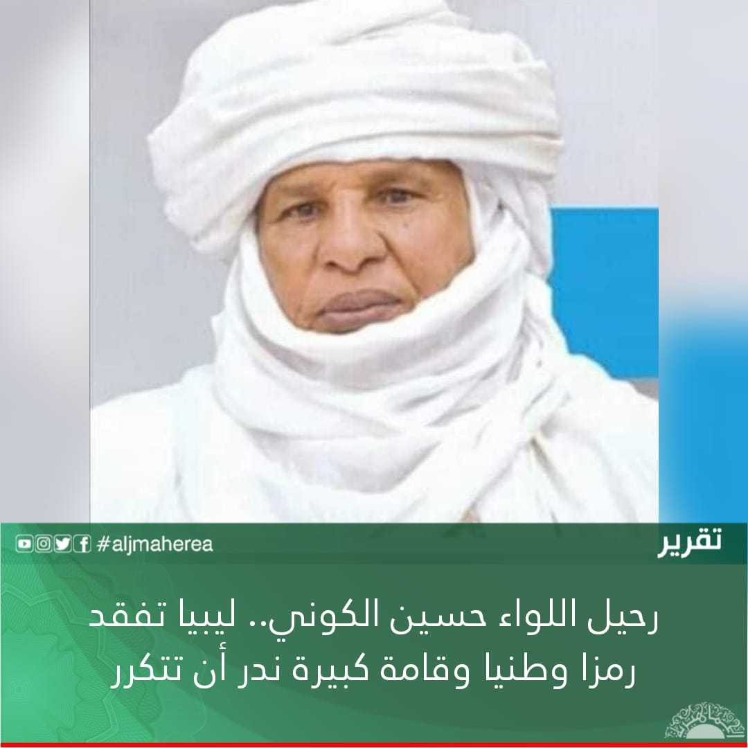 جاء رحيل اللواء حسين الكوني، رئيس المجلس الاجتماعي لطوارق ليبيا، وأحد القامات الوطنية المشهود لها ليشكل صدمة كبرى في مختلف الأوساط الليبية، لمكانة الرجل في نفوس الليبيين جميعا وادواره الوطنية على مدى تاريخه.