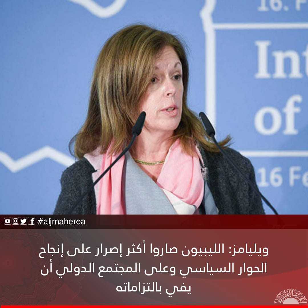 ويليامز: الليبيون صاروا أكثر إصرار على إنجاح الحوار السياسي وعلى المجتمع الدولي أن يفي بالتزاماته