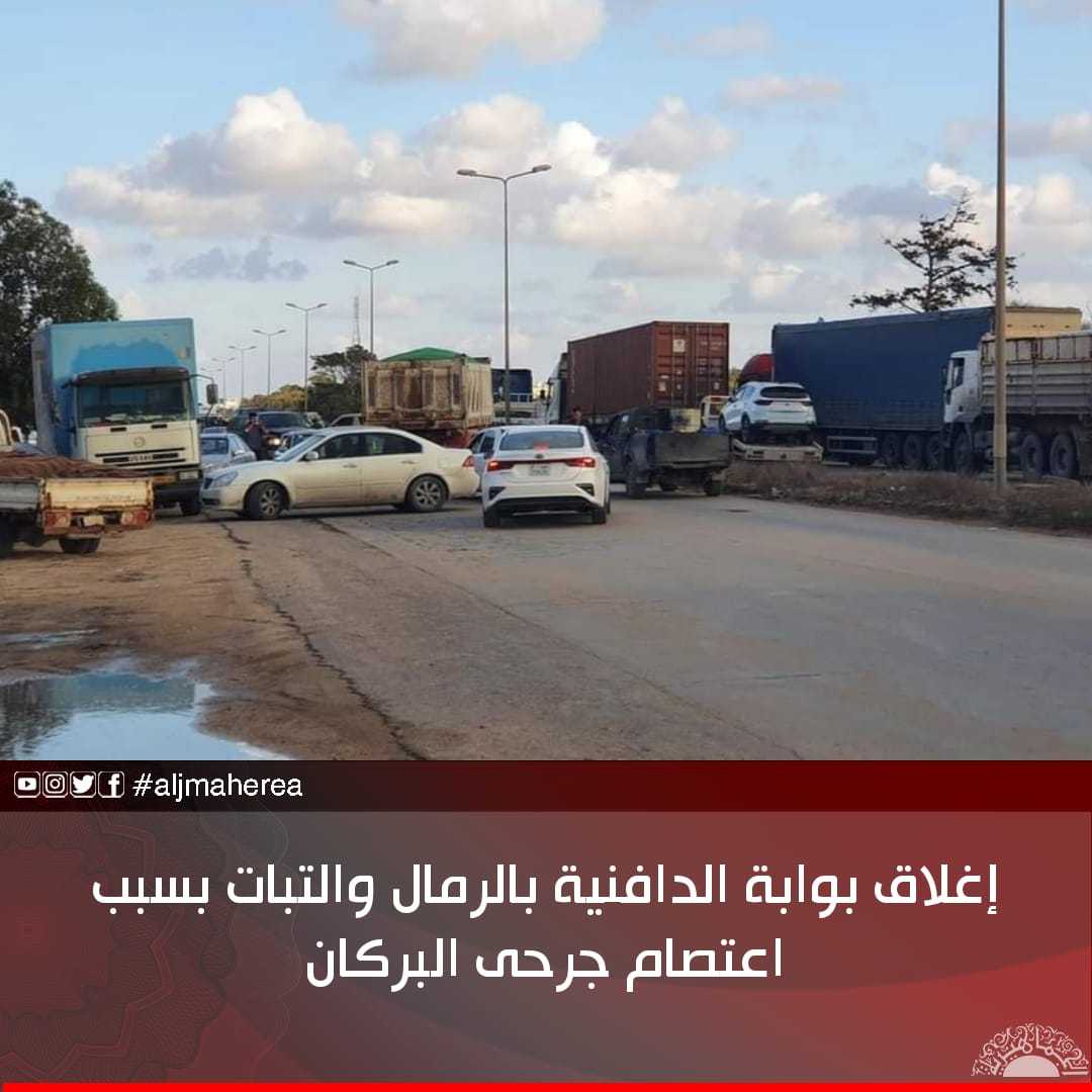 أكدت مصادر قيام مسلحين بإغلاق بوابة الدافنية بالرمال والتبات بسبب اعتصام جرحى مليشيات البركان