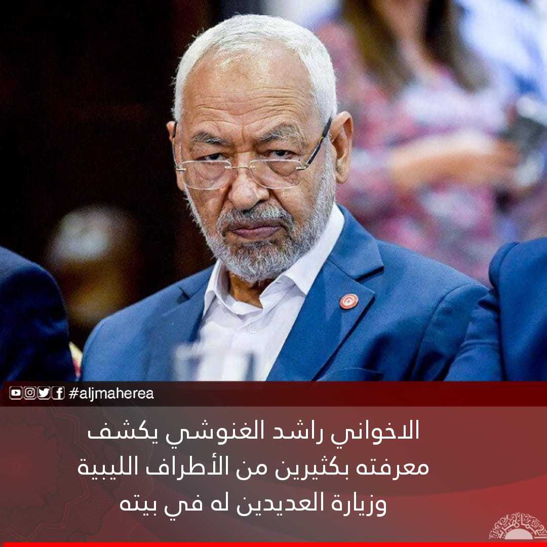 كشف رئيس مجلس نواب الشعب التونسي، ورئيس حركة النهضة الذراع السياسية لجماعة الإخوان المسلمين في تونس، راشد الغنوشي، معرفته بكثيرين من الأطراف الليبية وزيارة العديدين له في بيته وفي الحزب، ونظرتهم بإعجاب لتجربة التوافق التونسي وتمنياتهم بان تساعدهم تونس على الخروج من محنتهم، موضحًا أن هذا دور الدولة التونسية، وعندما تصل الأمور لمستوى معين فالدولة هي التي يجب أن تلعب الدور الرئيسي.