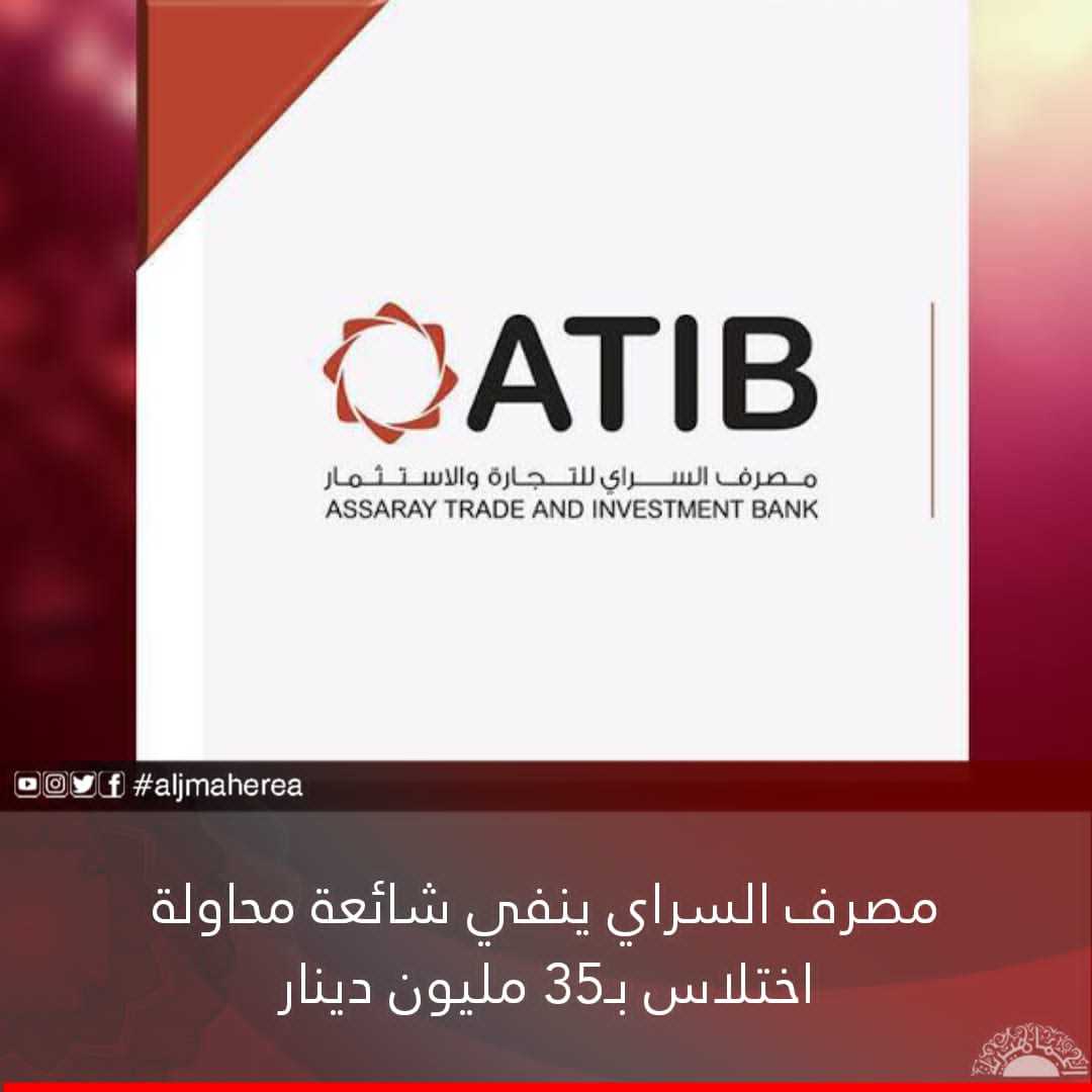 نفى مصرف السراي للتجارة والاستثمار (أتيب) الأخبار المتداولة والمغلوطة عن اختلاس قيمة كبيرة تصل إلى 35 مليون دينار بينما فيالحقيقة هي محاولة اختلاس مبلغ 3.9 مليون دينار وتم التصدي لها وإفشالها.