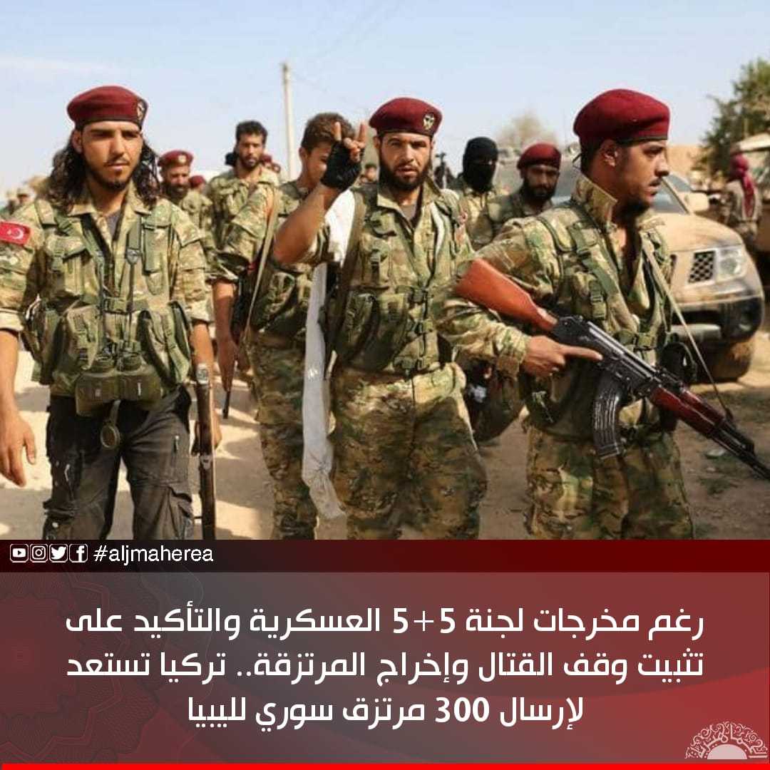 رغم مخرجات لجنة 5+5 العسكرية والتأكيد على تثبيت وقف القتال وإخراج المرتزقة.. تركيا تستعد لإرسال 300 مرتزق سوري لليبيا
