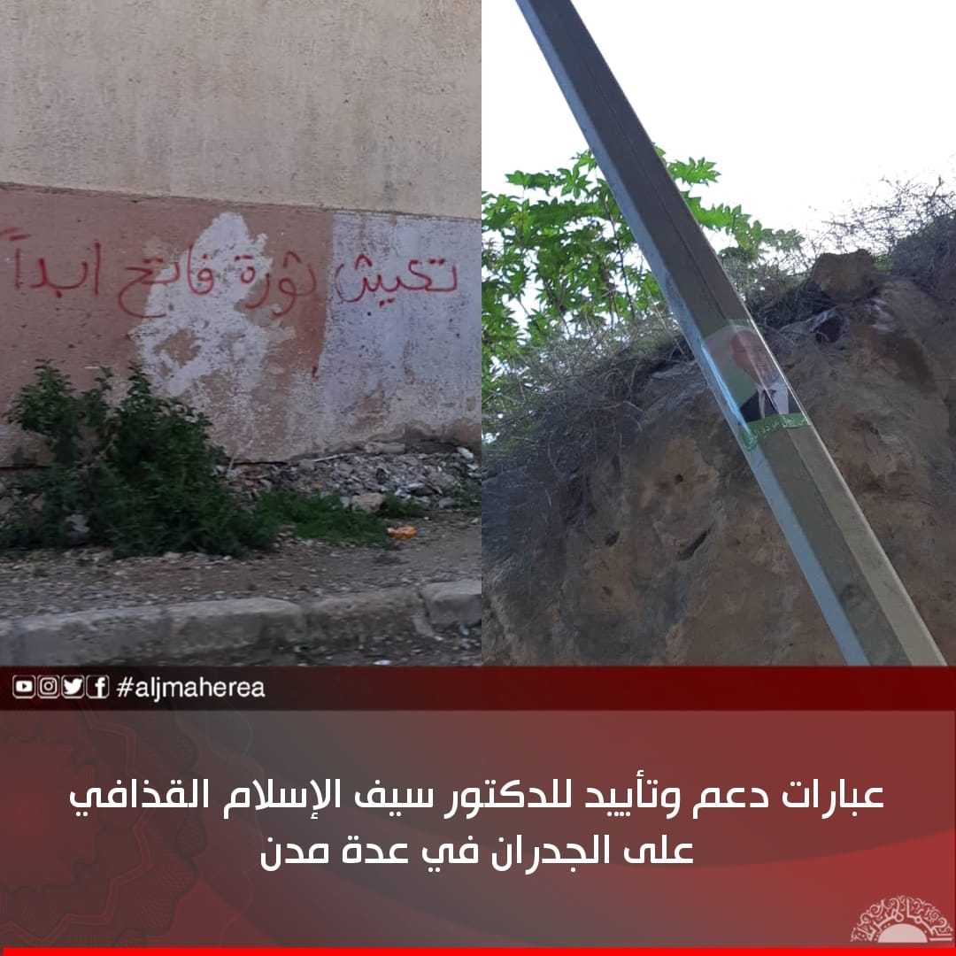 انتشرت عبارات دعم وتأييد للدكتور سيف الإسلام القذافي على الجدران بمدن القبة والبيضاء وسوسة والأبرق