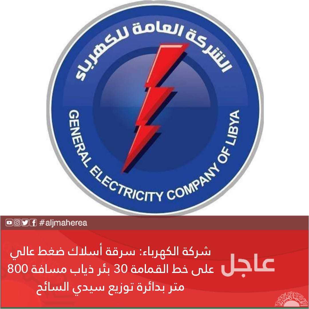 عاجل// شركة الكهرباء: سرقة أسلاك ضغط عالي على خط القمامة 30 بئر ذياب مسافة 800 متر بدائرة توزيع سيدي السائح