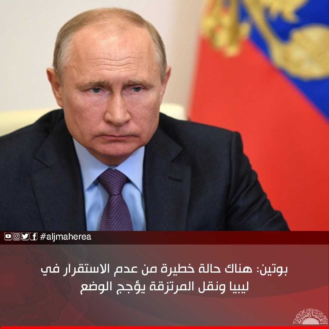 أكد الرئيس الروسي، بوتين، إنه لا تزال هناك حالة خطيرة من عدم الاستقرار، تسود الشرق الأوسط وشمال إفريقيا، بسبب المواجهات المسلحة في ليبيا واليمن.