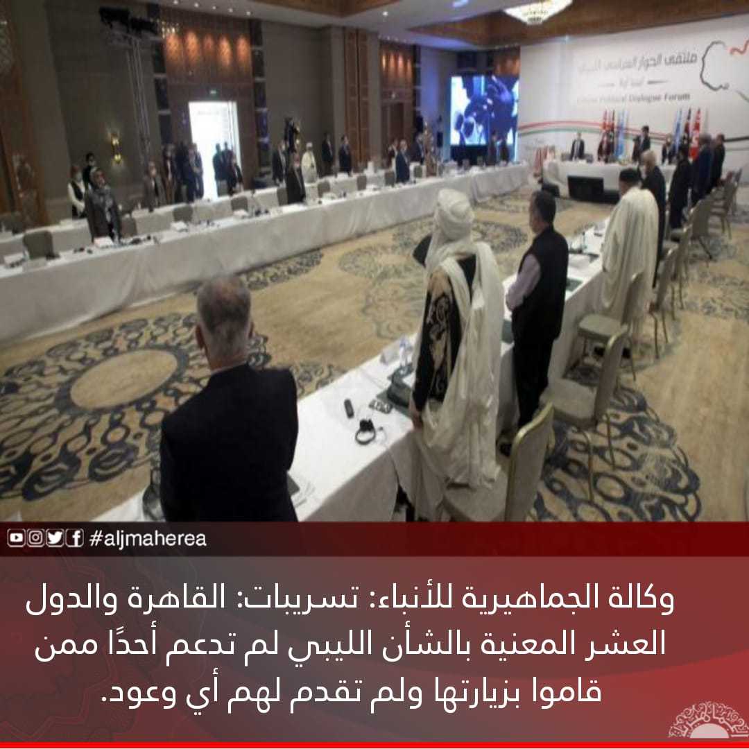 وكالة الجماهيرية للأنباء: تسريبات: القاهرة والدول العشر المعنية بالشأن الليبي لم تدعم أحدًا ممن قاموا بزيارتها ولم تقدم لهم أي وعود.