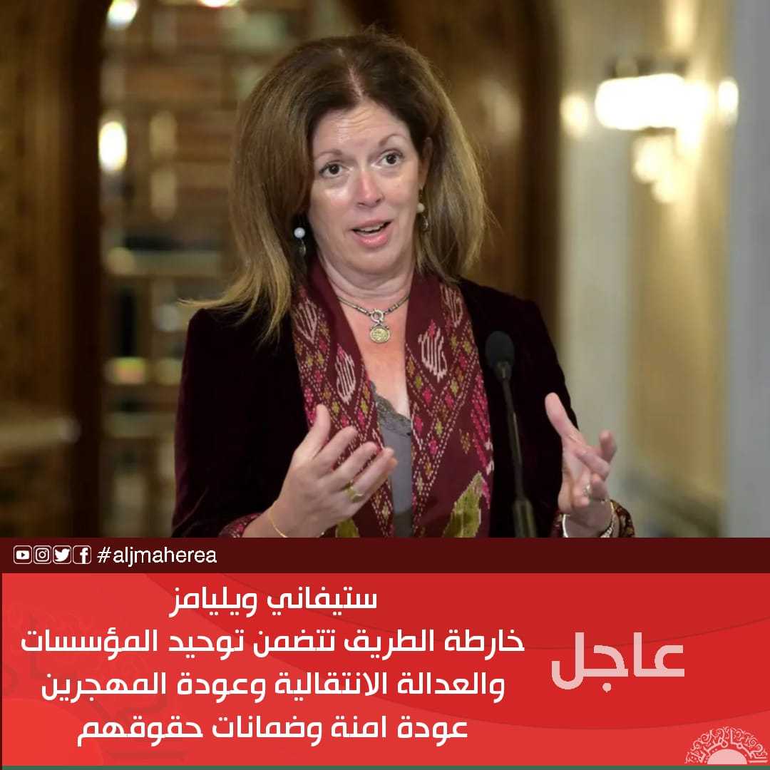 عاجل // ستيفاني ويليامز خارطة الطريق تتضمن توحيد المؤسسات والعدالة الانتقالية وعودة المهجرين عودة امنة وضمانات حقوقهم