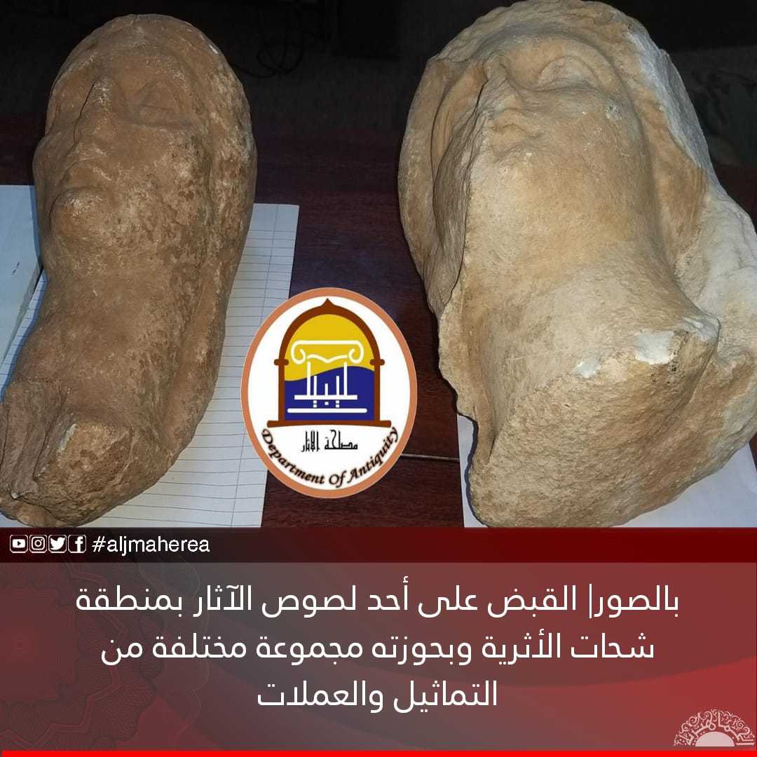 بالصور| القبض على أحد لصوص الآثار بمنطقة شحات الأثرية وبحوزته مجموعة مختلفة من التماثيل والعملات