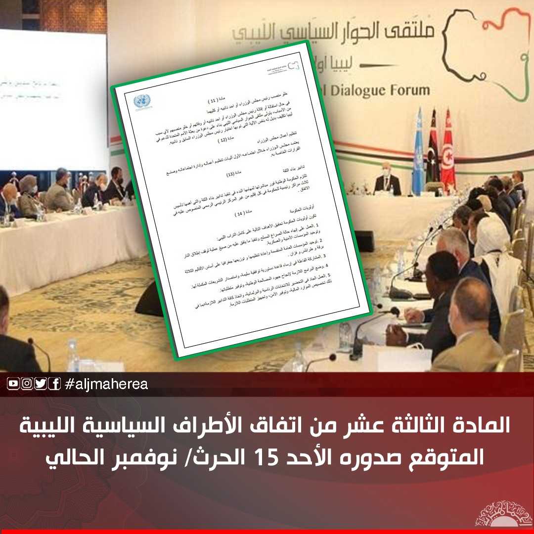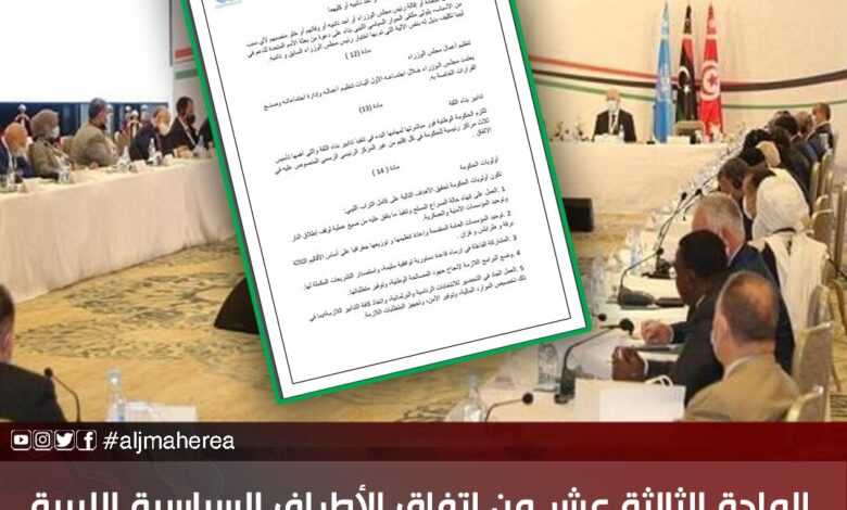 المادة الثالثة عشر من اتفاق الأطراف السياسية الليبية المتوقع صدوره الأحد 15 الحرث/ نوفمبر الحالي