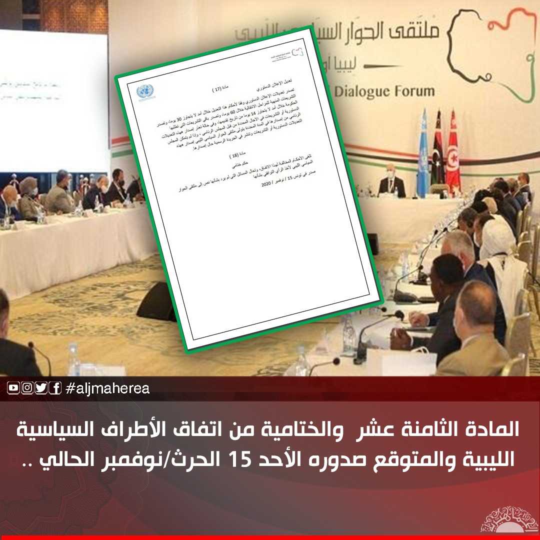 المادة الثامنة عشر والختامية من اتفاق الأطراف السياسية الليبية والمتوقع صدوره الأحد 15 الحرث/نوفمبر الحالي