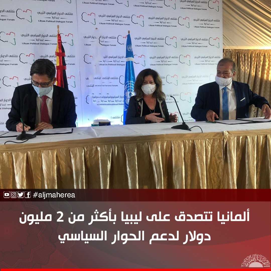 وشكرت القائمة بأعمال الممثل الخاص للأمين العام، ستيفاني ويليامز خلال حفل التوقيع «الحكومة الألمانية على مساهمتها السخية في دعم عملية السلام في ليبيا». مؤكدة «الوصول إلى معالم مهمة نحو المرحلة التحضيرية لإنهاء الانتقال الشامل في ليبيا».