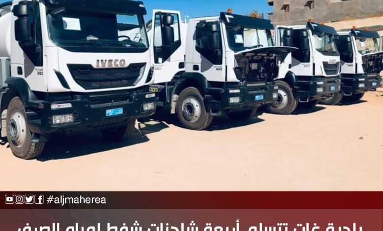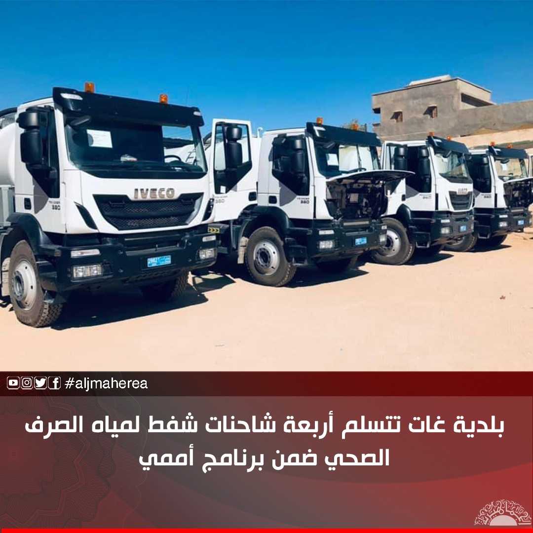 سلم المنسق الفني والاجتماعي لبرنامج الأمم المتحدة الانمائي ودعم الاستقرار ببلدية غات، اليوم السبت، أربعة شاحنات شفط لمياه الصرف الصحي.