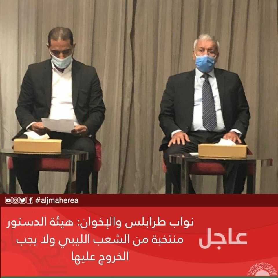 عاجل // نواب طرابلس والإخوان: هيئة الدستور منتخبة من الشعب الليبي ولا يجب الخروج عليها