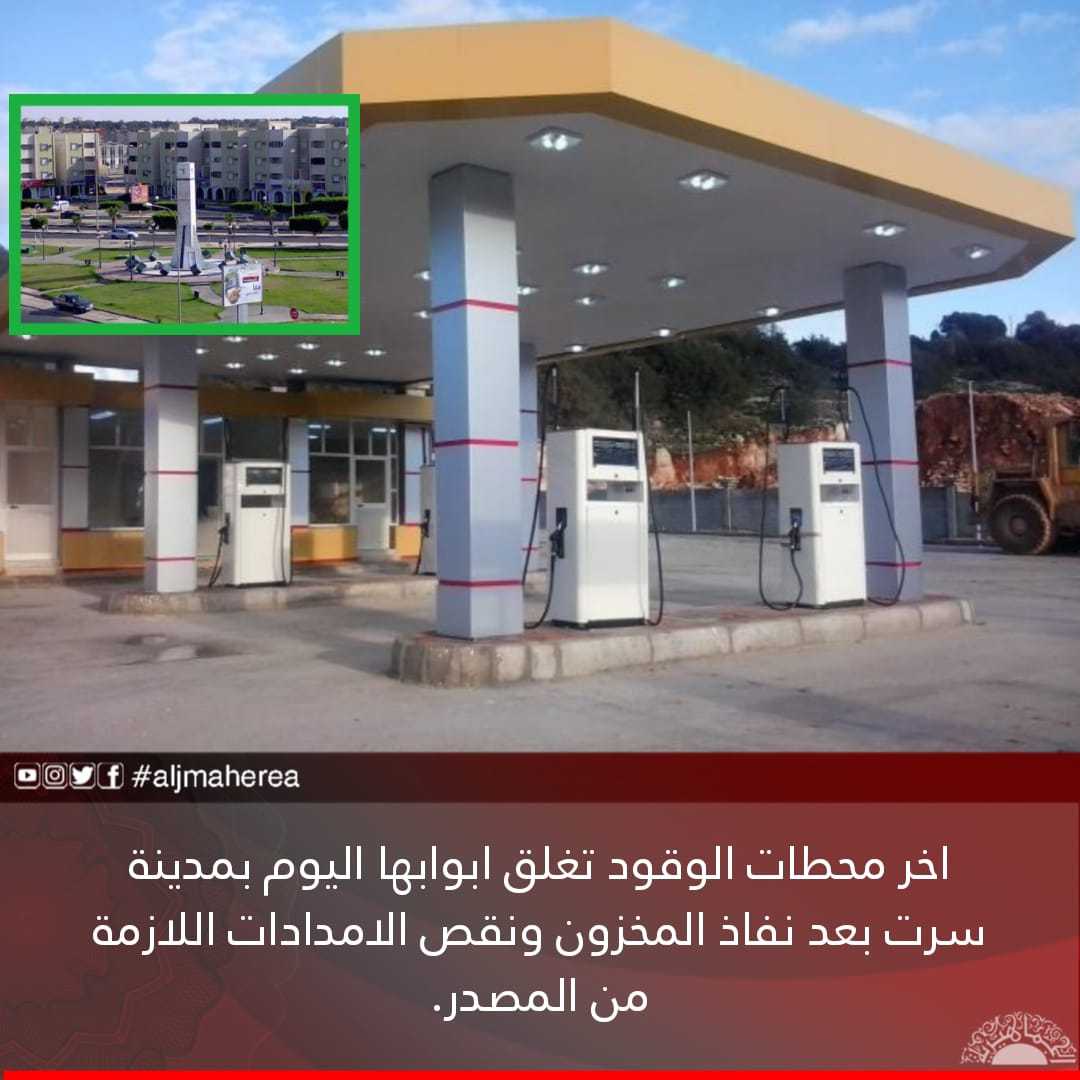 اخر محطات الوقود تغلق ابوابها اليوم بمدينة سرت بعد نفاذ المخزون ونقص الامدادات اللازمة من المصدر.