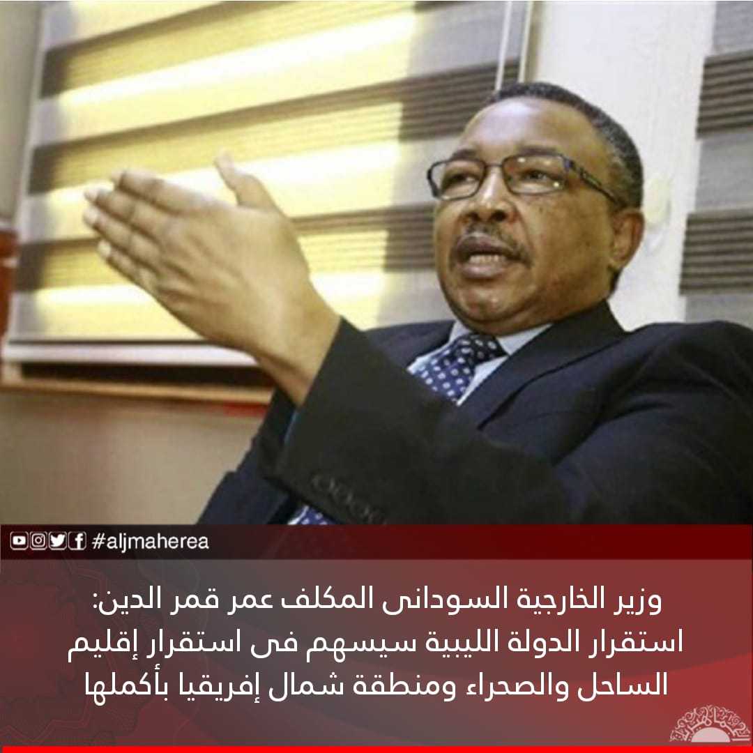وزير الخارجية السودانى المكلف عمر قمر الدين: استقرار الدولة الليبية سيسهم فى استقرار إقليم الساحل والصحراء ومنطقة شمال إفريقيا بأكملها