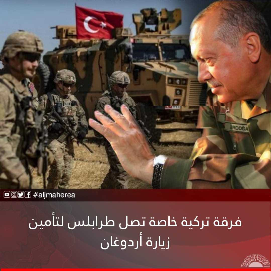 بغرض تأمين زيارة وشيكة لأردوغان إلى ليبيا هى الأولى من نوعها، وصلت طرابلس أول أمس، فرقة أمنية من القوات الخاصة التركية لتأمين الزيارة.