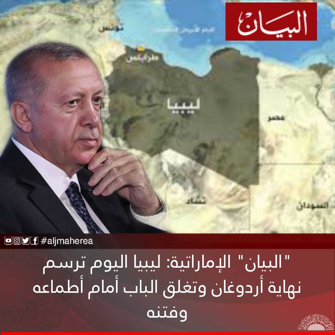 هكذا بدأت جريدة “البيان” الإماراتية، كلمتها عن الأوضاع المتوقعة في ليبيا خلال الفترة القادمة، وقالت في مقال باسمها، إنه قد ضاق الخناق في الآونة الراهنة على مخططات أردوغان في ليبيا، بعد كشف كل خططه الإرهابية في بلاد عمر المختار، حيث عطل مخرجات مؤتمر برلين، ورفض كل المبادرات لحل الأزمة الليبية، ما تسبب في تأجيج الصراع الليبي وتأخر الحل.