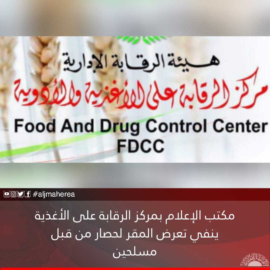 مكتب الإعلام بمركز الرقابة على الأغذية ينفي تعرض المقر لحصار من قبل مسلحين