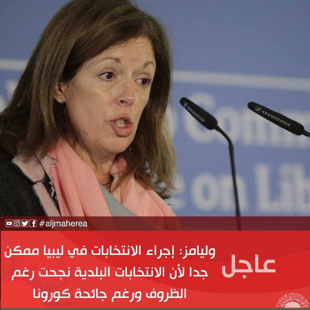 وليامز: إجراء الانتخابات في ليبيا ممكن جدا لأن الانتخابات البلدية نجحت رغم الظروف ورغم جائحة كوروناوليامز: إجراء الانتخابات في ليبيا ممكن جدا لأن الانتخابات البلدية نجحت رغم الظروف ورغم جائحة كورونا