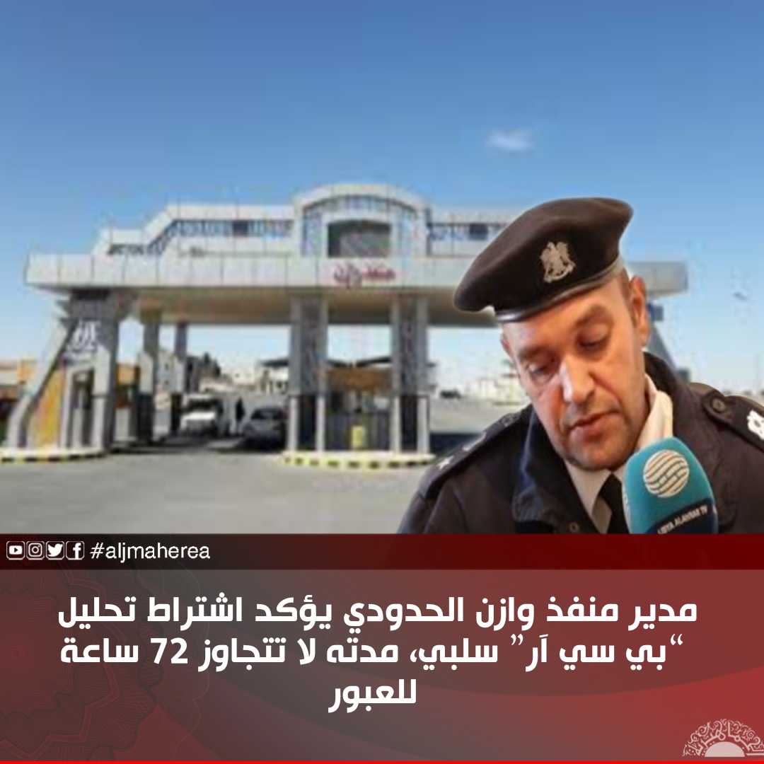 مدير منفذ وازن الحدودي يؤكد اشتراط تحليل “بي سي آر” سلبي، مدته لا تتجاوز 72 ساعة للعبور