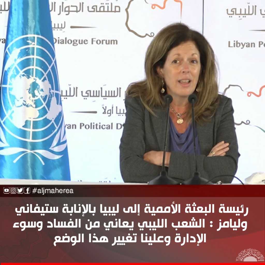 رئيسة البعثة الأممية إلى ليبيا بالإنابة ستيفاني وليامز : الشعب الليبي يعاني من الفساد وسوء الإدارة وعلينا تغيير هذا الوضع